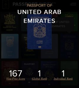 تخطى أول جواز سفر عربي جميع الدول، واحتل المركز الأول عالميًا في ترتيب أقوى جوازات السفر العالمية، وذلك بعد إعلان الشيخ محمد بن راشد رئيس الوزراء الإماراتي وحاكم دبي عن اختيار موقع "باسبورد إندكس" العالمي لـجواز السفر الإماراتي ليصبح الأول عالميًا.