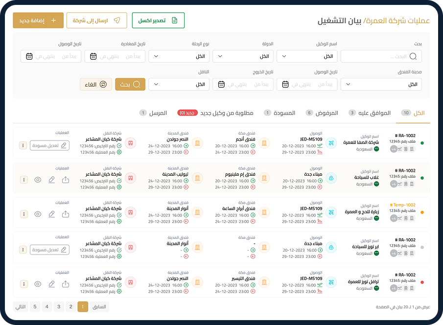 من خلال منصة واحدة آمنة، يتيح النظام إدارة الحجوزات، والنقل، والإقامة، ومتابعة أنشطة الممثلين بدقة وسرعة وشفافية تامة.