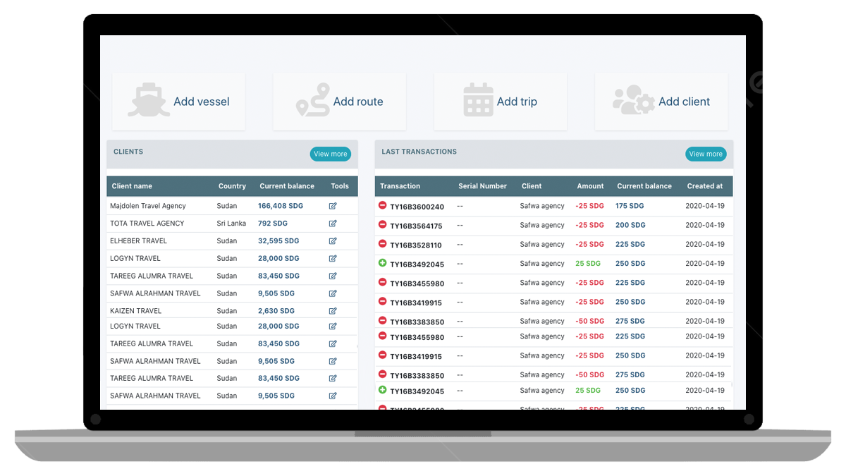 بالإضافة إلى تقديم نظام عمليات كامل من بداية إصدار التذاكر وتصعيد الرٌكاب والتقارير المالية والاحصائيات الشاملة للسُفن.